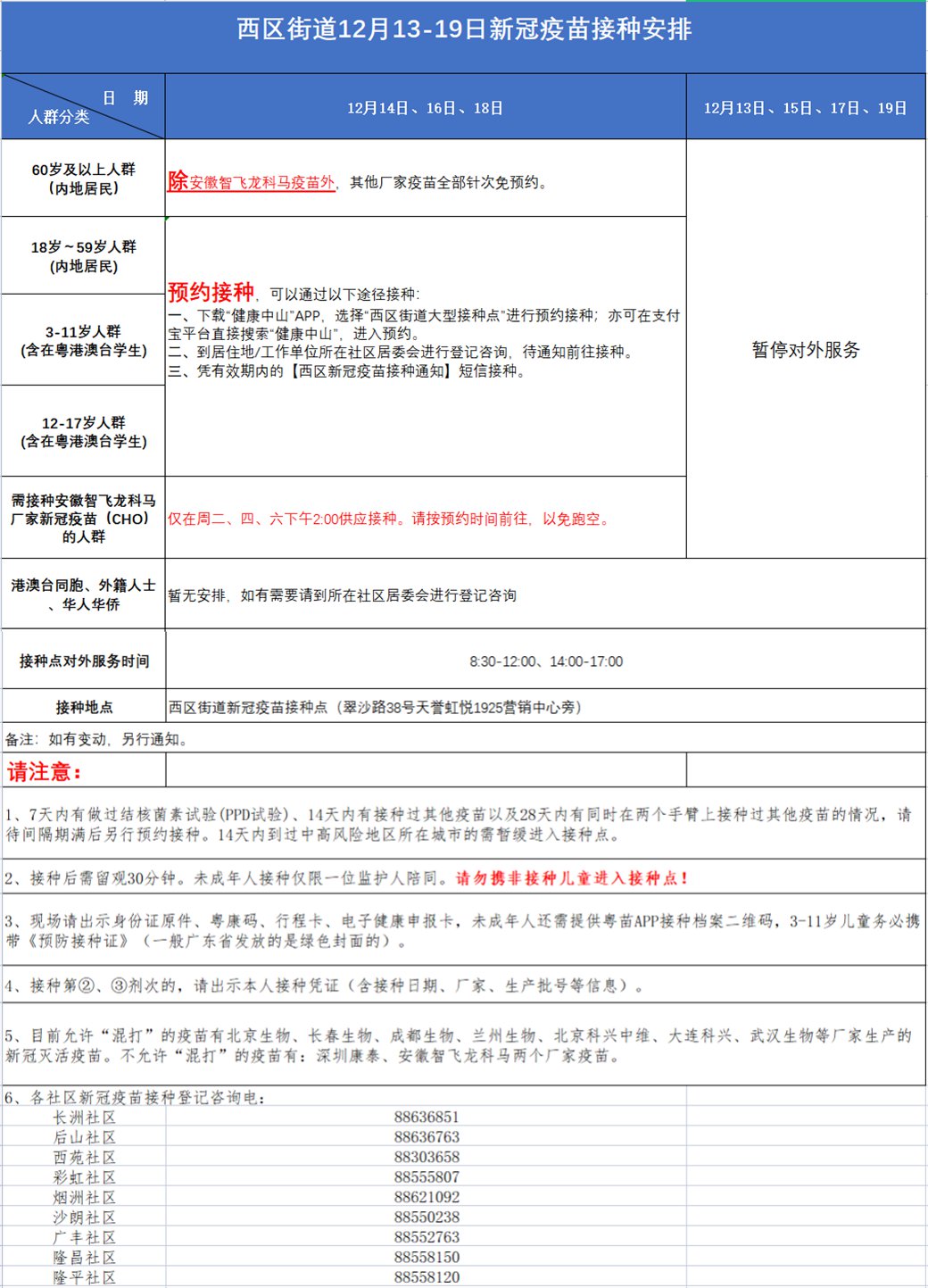 西区街道12月13日至19日新冠疫苗接种安排出炉啦