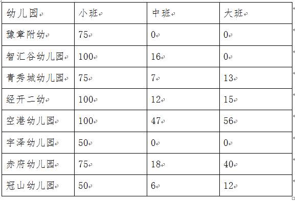 *因经开一幼2019年秋季已招收5个班级,今年小班开设3个班,75个学位;以上三个幼儿园中班和大班学位已满,不招插班生。