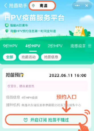 预约开放时间:200人份九价HPV疫苗,于7月3日14:00,200人份四价HPV疫苗,于7月3日17:00