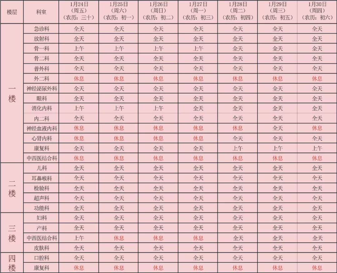 2020中山市博爱医院春节科室开诊时间安排