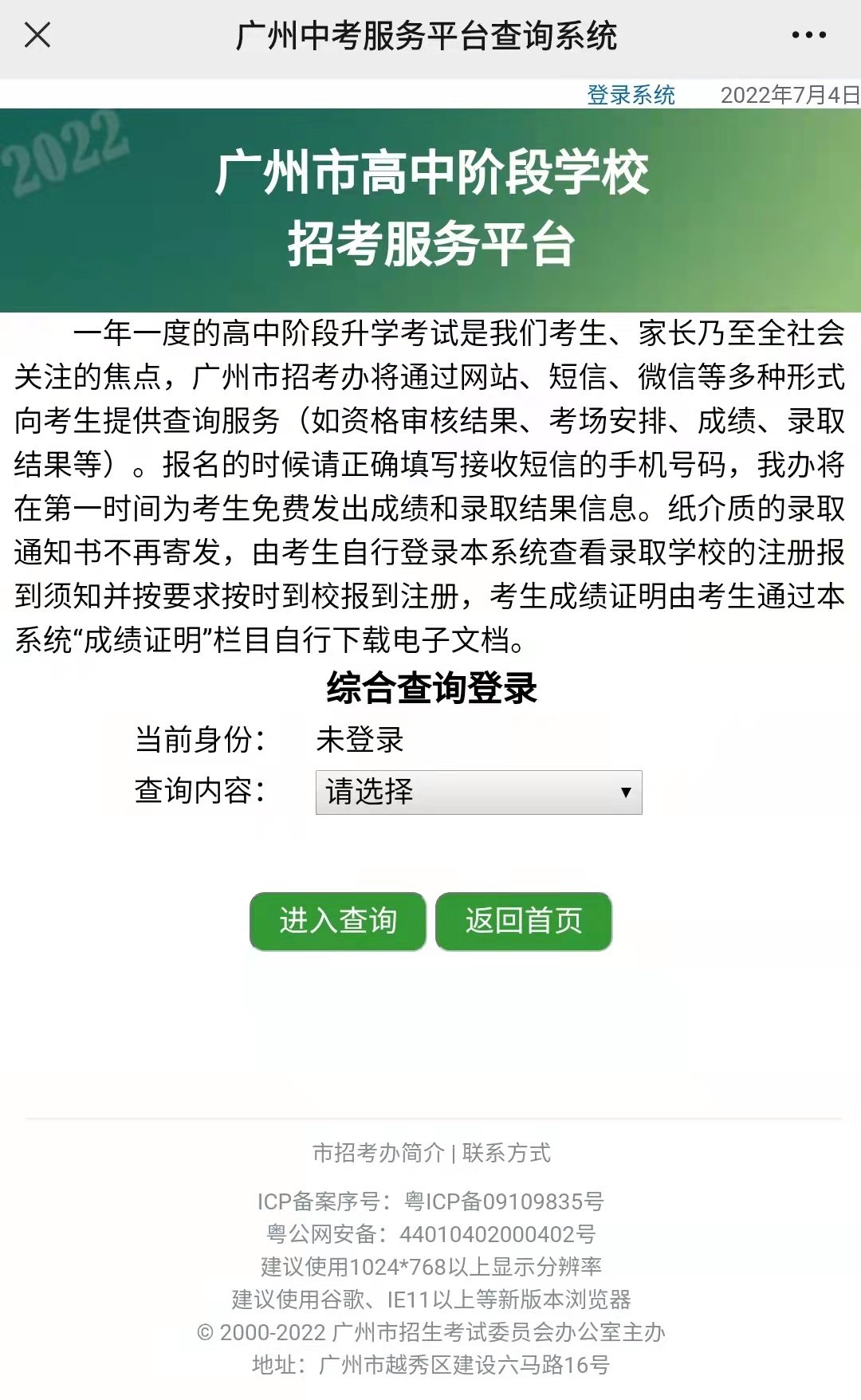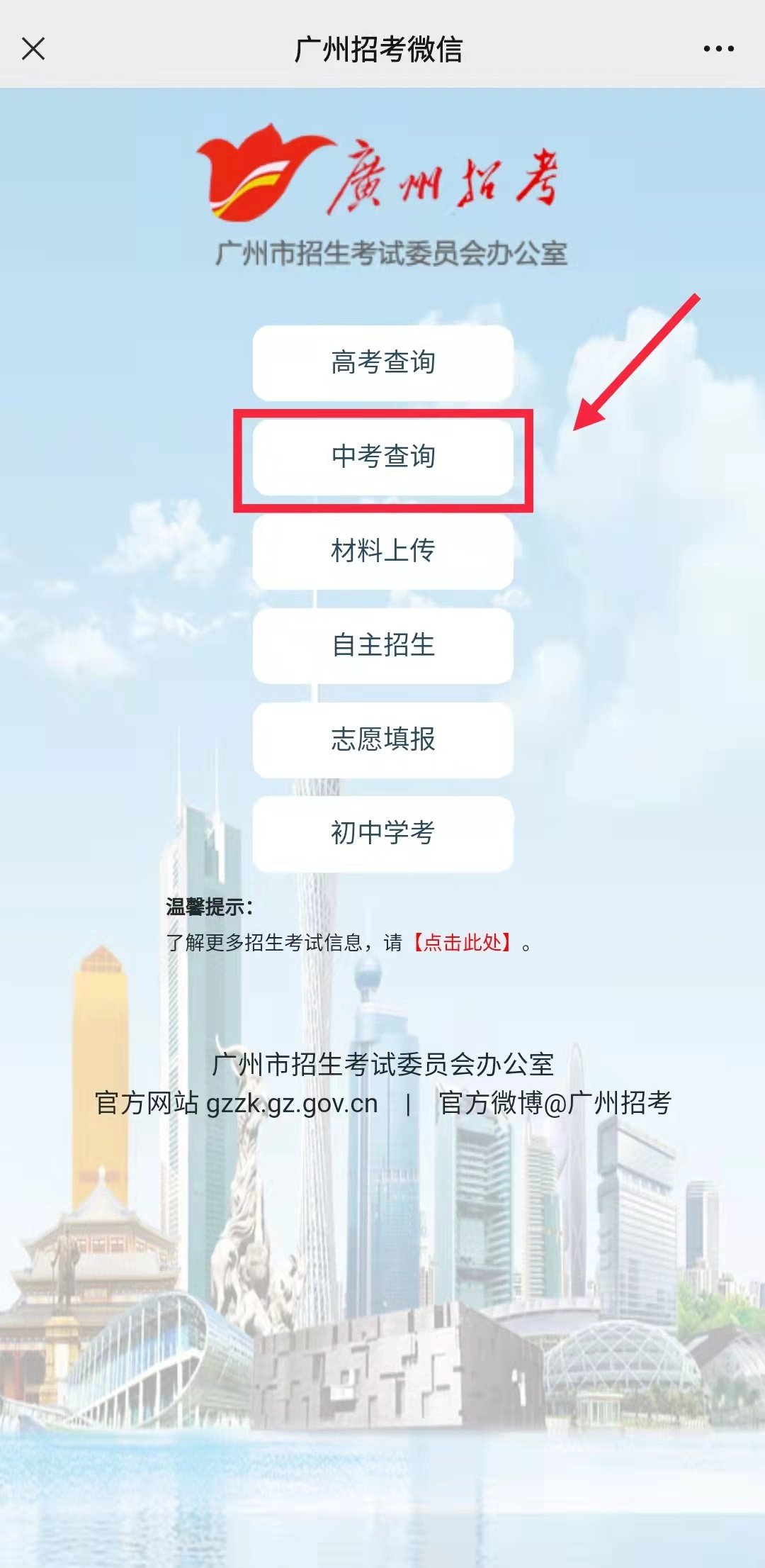 第二步:在“招考查询”中找到“中考查询”,登录后选择相应的查询类型即可查询。