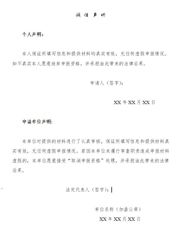 本人保证所填写信息和提供材料均真实有效,无任何虚假申报情况。如不真实本人愿意放弃申报资格,并承担由此带来的法律后果。