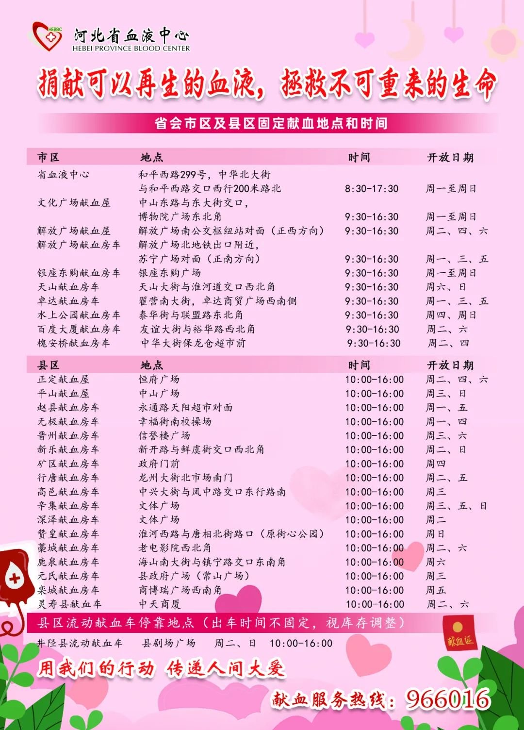 平山献血屋:平山县城中山广场,(每周三)