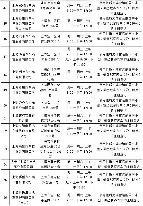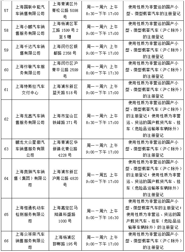可办理新车注册登记的全市73个机动车登记服务站(即“上牌点”)