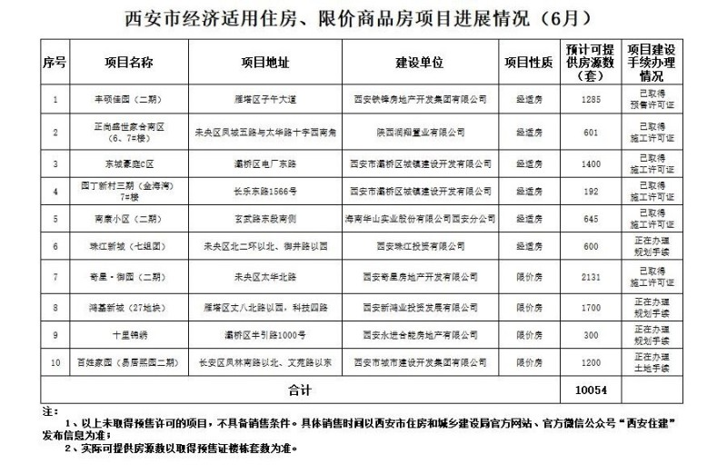 西安市经济适用住房、限价商品房项目进展情况及报名须知(6月)