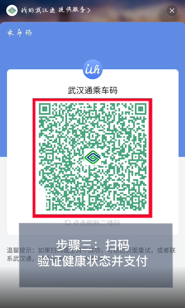 打开微信小程序“i武汉 武汉战疫”,在申领健康码后点击“公交乘车码”,按提示开通乘车码,使用该乘车码即可实现“一码通刷”。