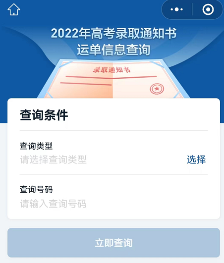 二、选择查询类型(准考证号或快递单号),输入查询号码即可获取当前配送信息。