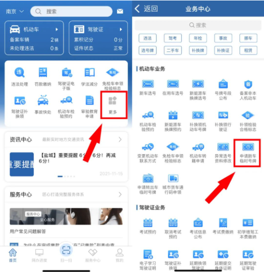 下载“交管12123”APP,注册并实人认证登录后,在机动车业务办理类服务中选择【申请新车临时号牌】业务,填写提交相关资料进行申请。