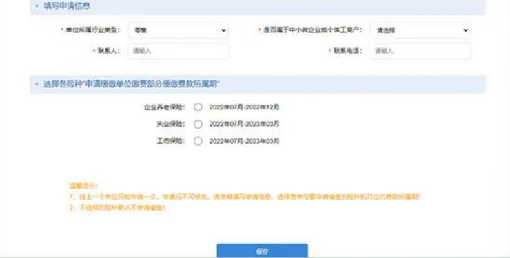 ①填写完整信息后勾选各险种缴费期限后点击”保存“;