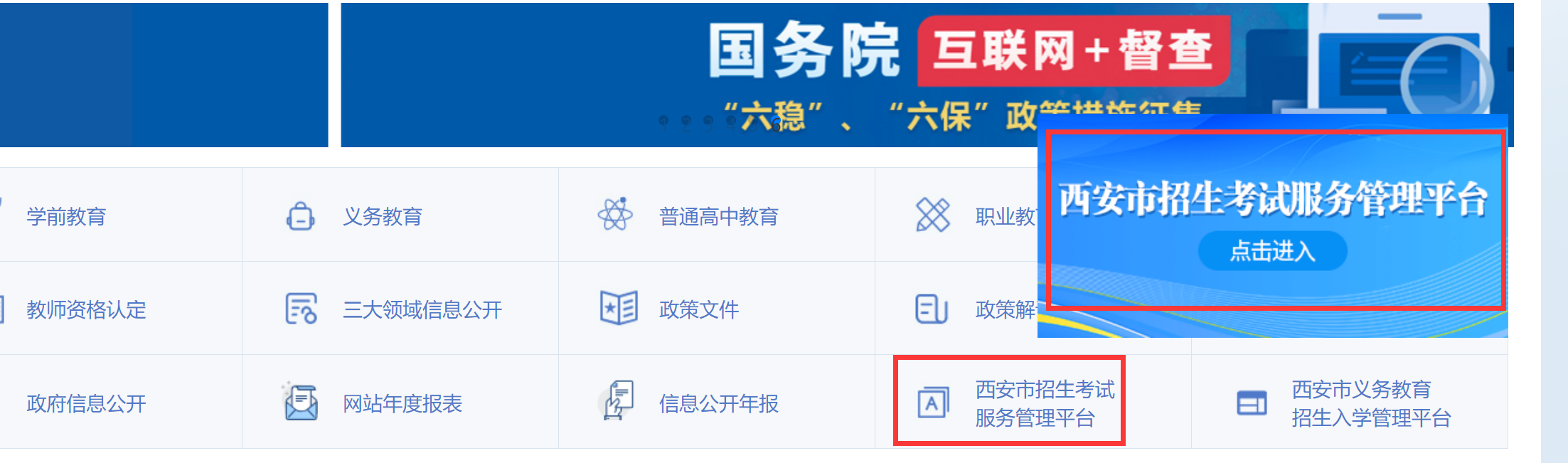 1、进入【西安市教育局】,点击进入【西安市招生考试服务管理平台】