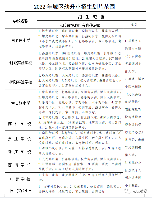 问:2022石家庄元氏县小学划片范围是什么