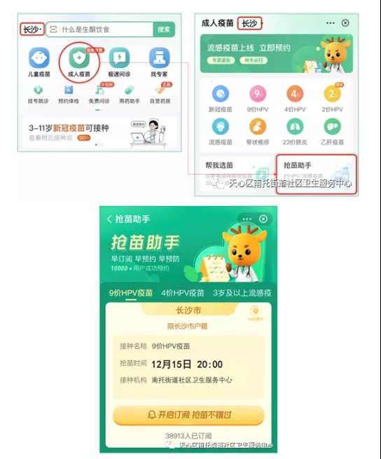 天心区南托街道社区卫生服务中心有九价疫苗可以预约啦!以下是预约方式,供大家参考。