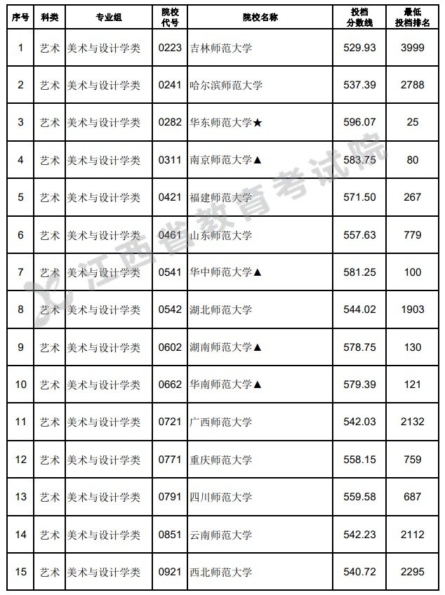 ☑ 2022年江西省艺术类及体育类各批次高考文化录取控制分数线:
