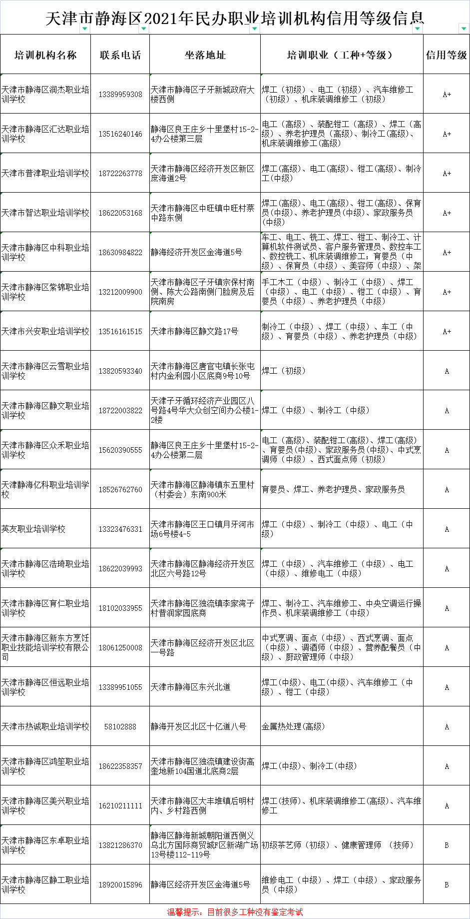 天津静海区职业技能培训机构(天津静海区职业技能培训机构电话)