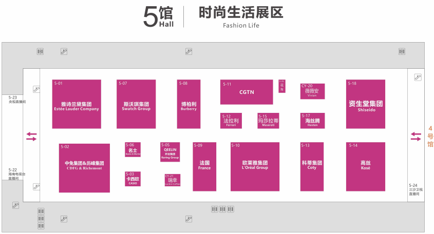 5号馆共有15家企业,87个品牌参展,包含腕表、珠宝、服饰、香化、家居等品类,在欧莱雅集团、历峰集团、斯沃琪集团等继续参展的基础上,新增雅诗兰黛集团、科蒂集团、海丝腾、法拉利、玛莎拉蒂等头部企业及品牌。