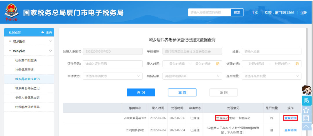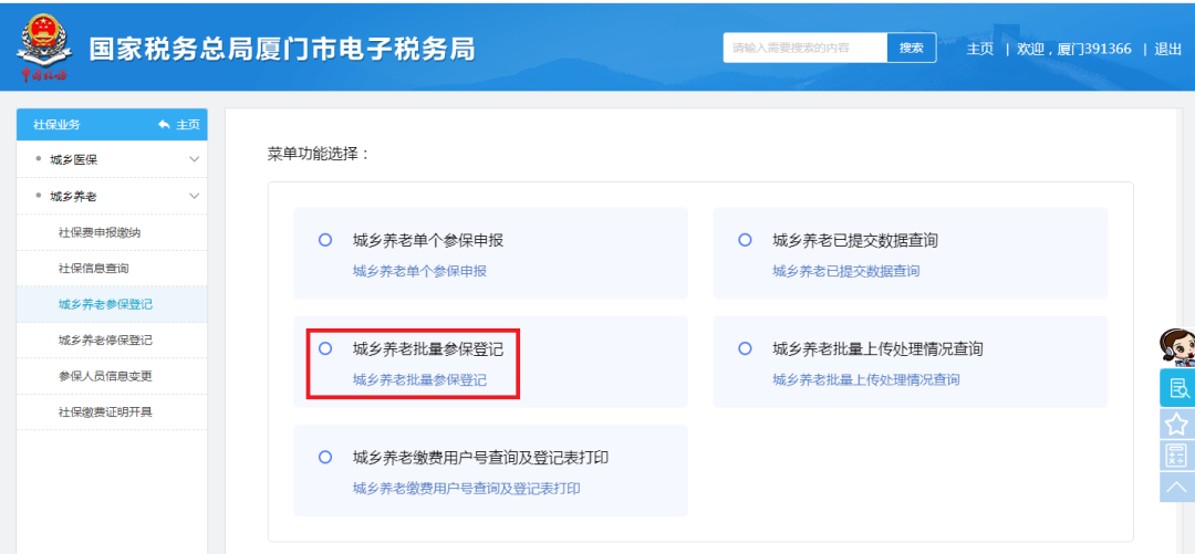 路径:【社保业务】-【城乡养老】-【城乡养老参保登记】-【城乡养老批量参保申报】