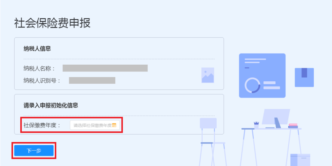 步骤:①选择【社保缴费年度】,点击【下一步】;