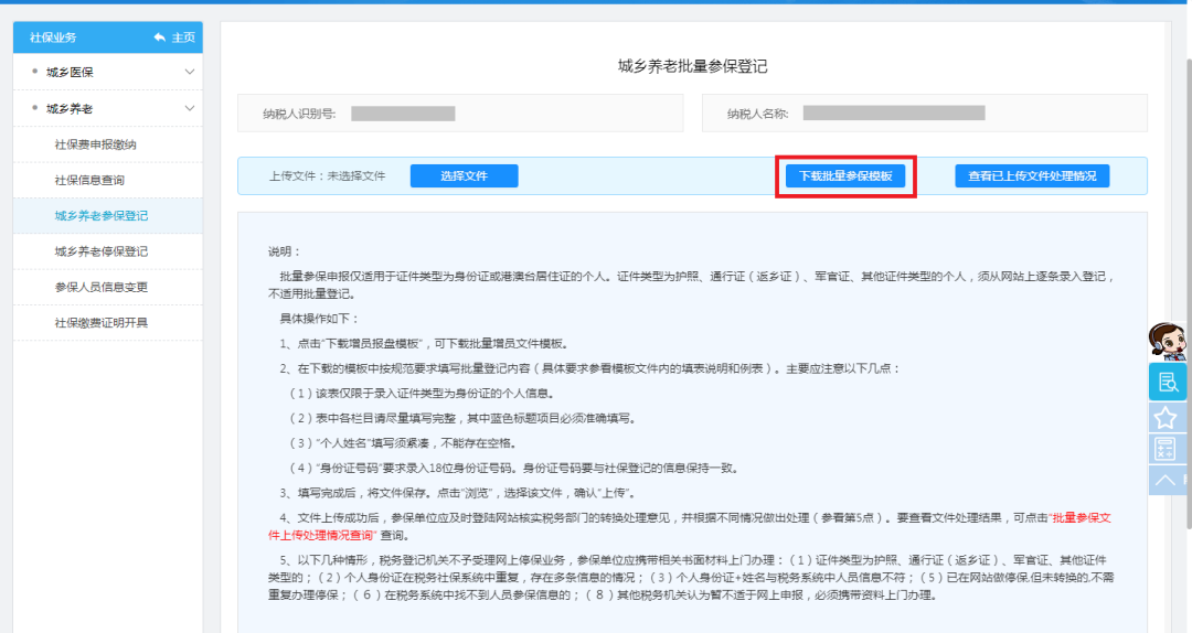 3.批量参保登记模块仅适用于证件类型为身份证或港澳台居住证的个人,其他证件需要通过逐条登记来办理。