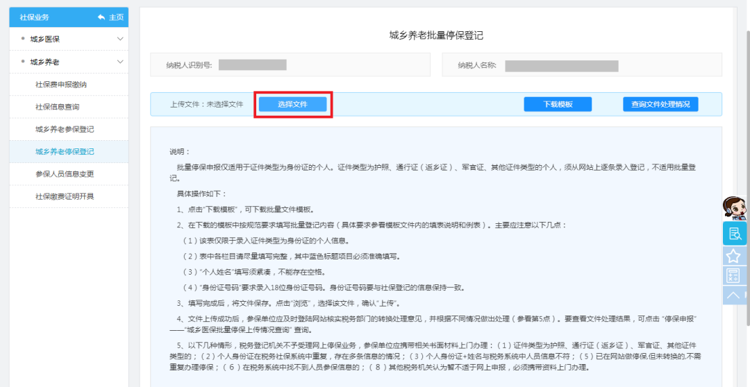 路径:【社保业务】-【城乡养老】-【城乡养老停保登记】-【城乡养老批量停保申报】