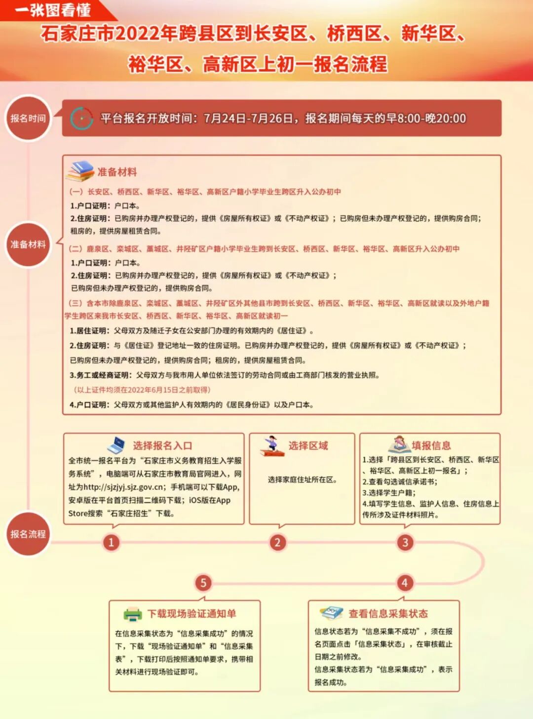 2022石家庄跨县区上初一报名流程如下:
