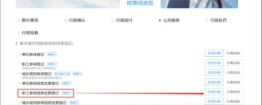 1.选择“公共服务”,找到“职工参保信息变更登记”点“在线办理”