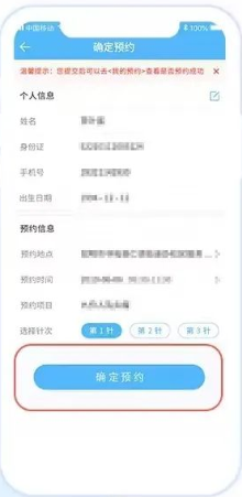 4.提交个人信息:确认个人信息、选择针次