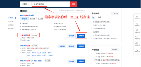 1.广东政务服务网,通过广东省政务网搜索对应的事项,点击在线办理。