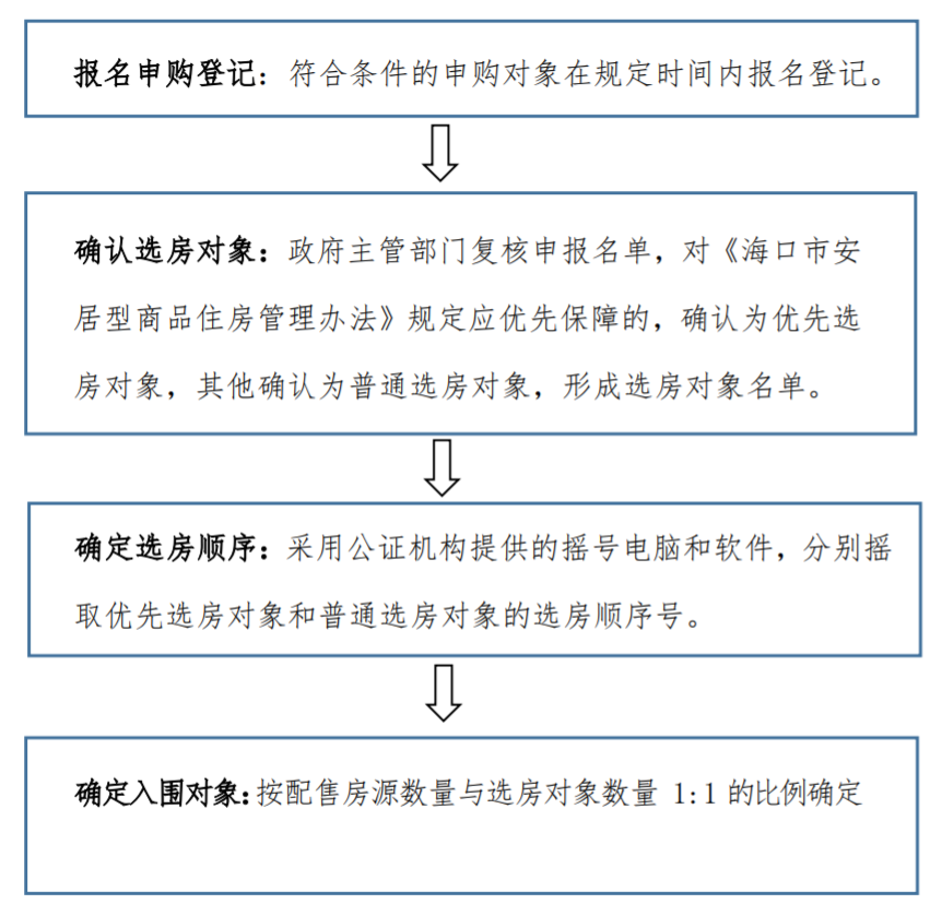 海口市住房保障管理中心、公证处对选房工作进行全过程跟踪监督。邀请媒体、摇号代表参与选房配售过程监督,全过程接受社会各界监督。