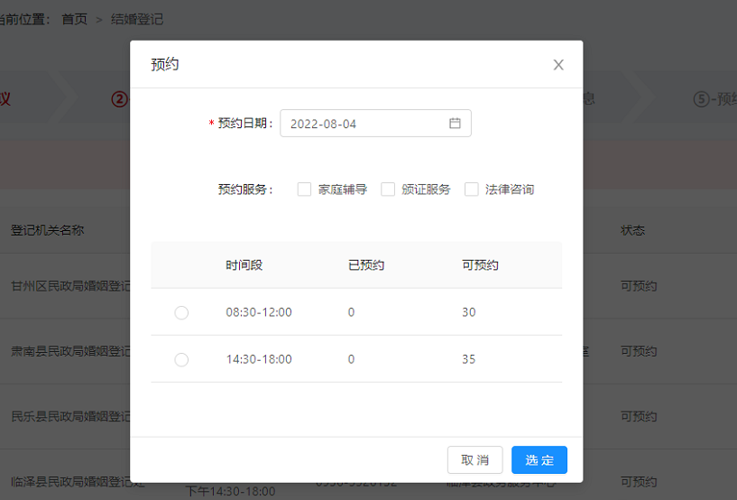 ⑤选择登记日期8月4日及具体时段(注意:登记日期选择几号,只能几号办理);