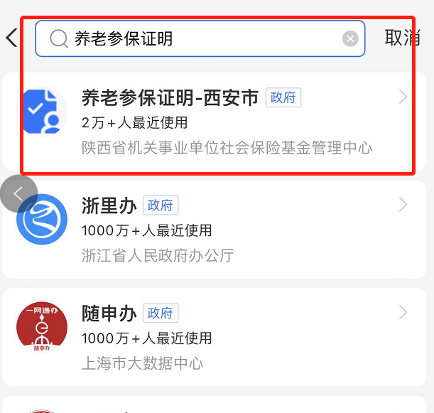 2、搜索【养老参保证明】