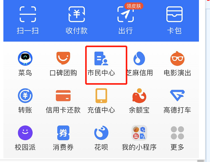 1、支付宝点击【市民中心】