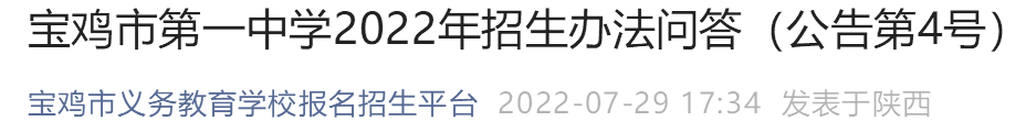 答:依据有关规定,参与宝鸡市第一中学报名学生不再保留原学区公办学位,若未被录取由学籍或户籍所在地教体局按照相对就近原则,统筹安置到有空余学位的公办学校。为了避免派位不成功而失去原学区公办学位,请家长理性选择报名。