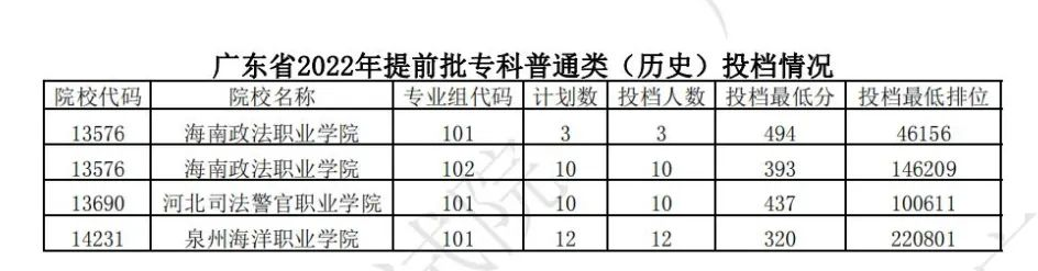 广东省今年提前批专科已完成投档,投档情况如下。