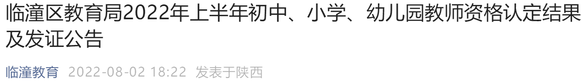 临潼区2022年上半年教师资格认定工作已经完成了网报、体检、现场确认、资格审核、证书编号工作,我局受理初中、小学、幼儿园教师资格认定申请,确认通过527人(见附件1)。通过认定的申请人可登录中国教师资格网或在附件中查询个人基本信息,查看教师资格证书号码。