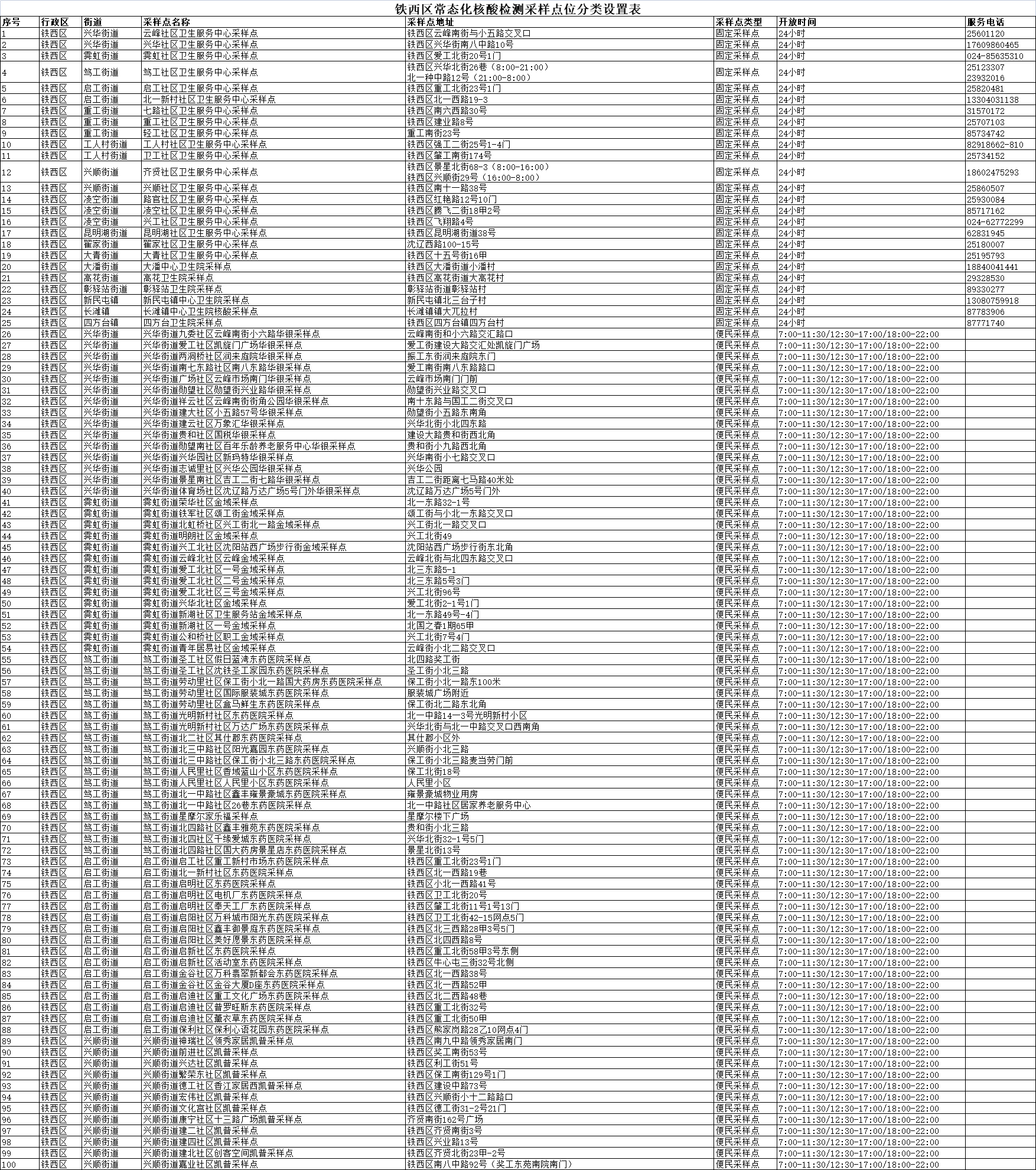 沈阳沈河区免费核酸检测地点一览 沈阳市免费核酸检测地点