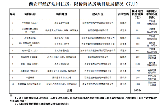 西安经济适用住房、限价商品房项目截止七月底进展情况