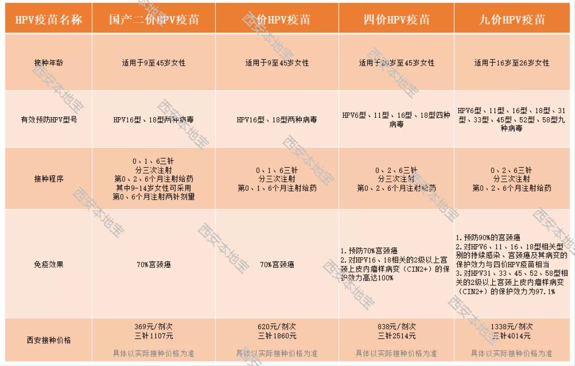 国产二价369元/针,进口二价620元/针,进口四价838元/支,进口九价1338元/针