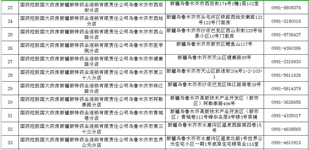 正常接诊的乌鲁木齐市慢性病定点零售药店