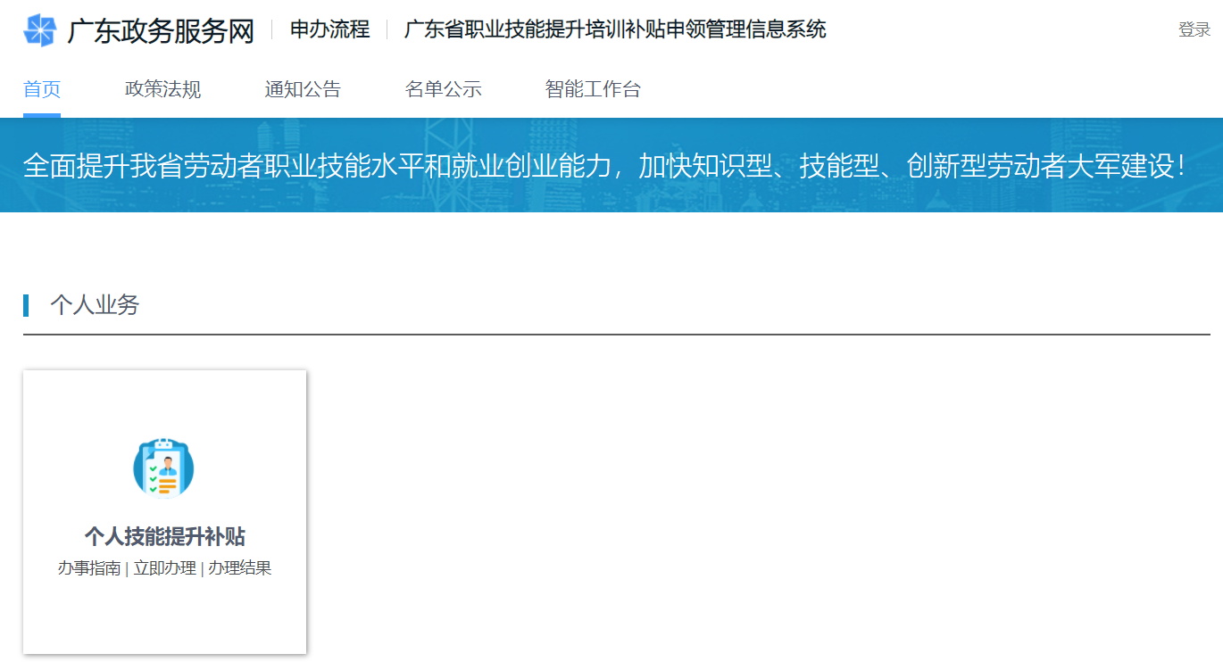 广东省职业技能提升培训补贴申领管理信息系统(http://ggfw.gdhrss.gov.cn/YCZG)