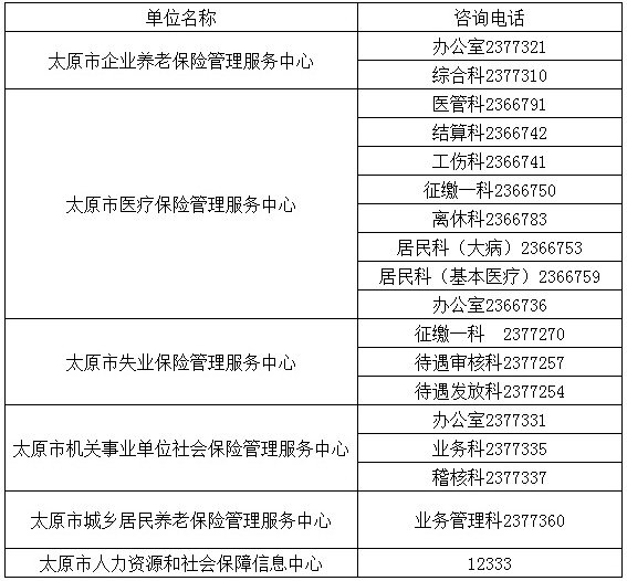 经市政府同意,太原市企业养老保险管理服务中心、太原市医疗保险管理服务中心、太原市失业保险管理服务中心、太原市机关事业单位社会保险管理服务中心、太原市城乡居民养老保险管理服务中心、太原市人力资源和社会保障信息中心(社保卡)已从太原市社会保障大厦(建设南路22号)整体迁入太原市为民服务中心三楼(万柏林区南屯南街1号)。