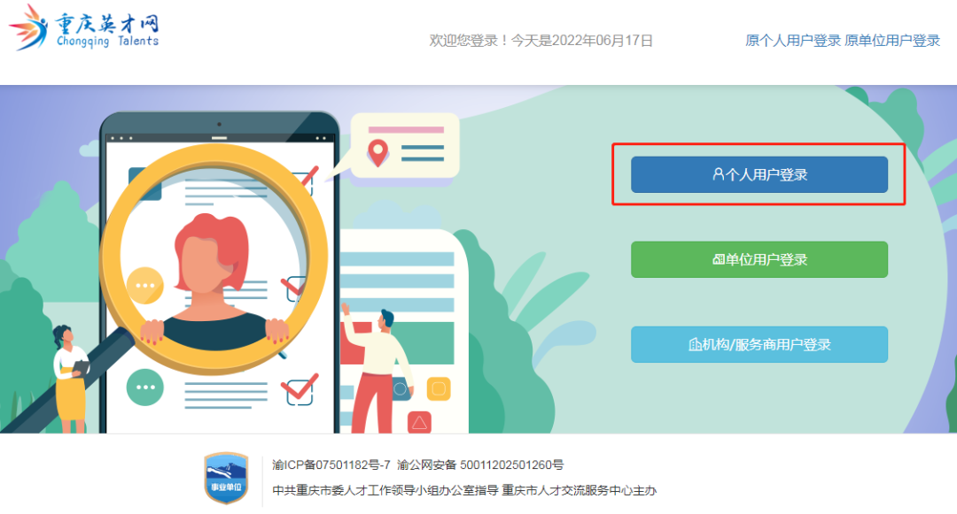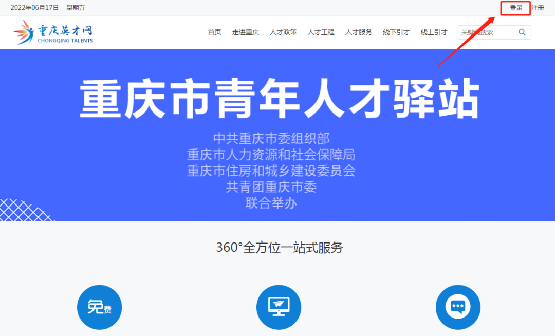 第一步:进入“重庆英才网”,进入后点击“重庆市青年人才驿站”;