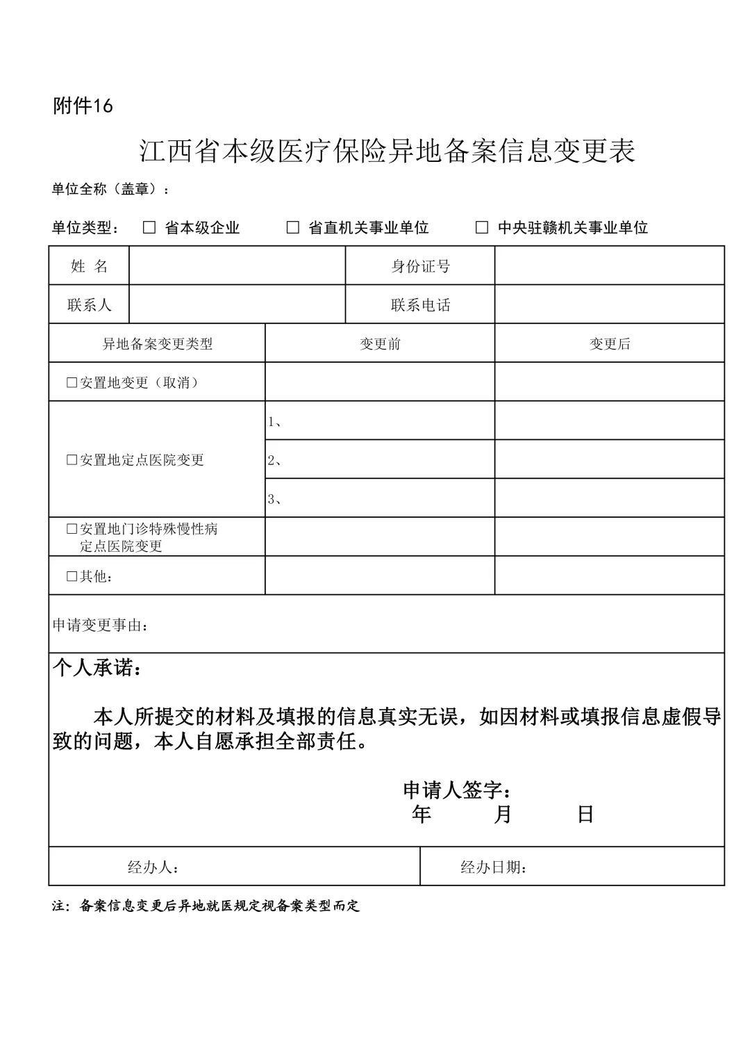 参保人员本人填写并签字确认的《江西省本级医疗保险异地备案信息变更表》(一式两份,机关事业单位需加盖单位公章)。