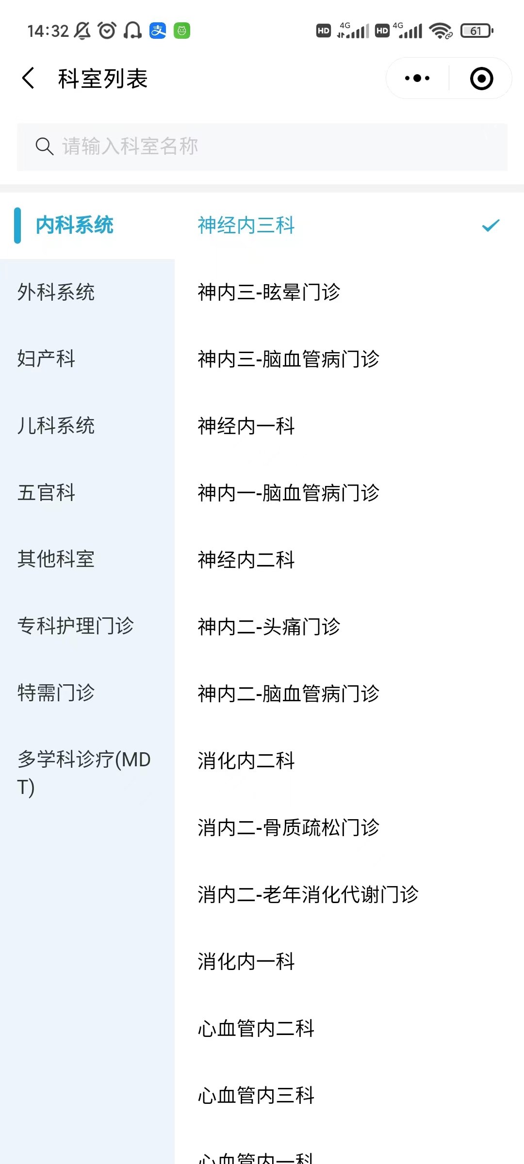 第三步:选择要预约的科室,进入后选择有号的医生及时间即可。