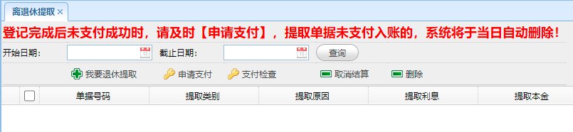 1、进入业务界面后,点“我要退休提取”按钮打开提取界面: