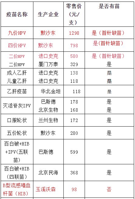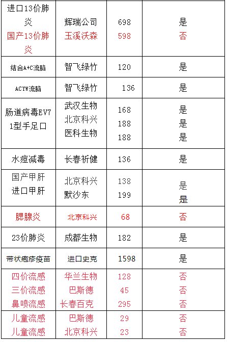 备注:以上价格未包含 非免疫规划疫苗 预防接种服务费: