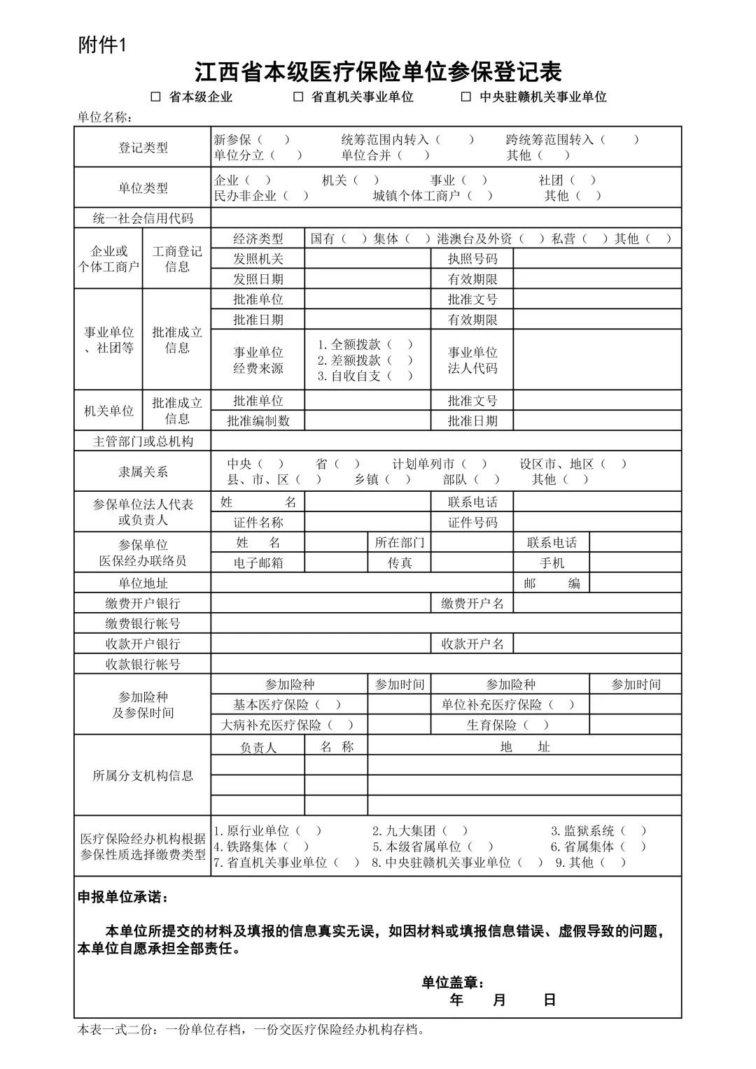 ②加盖单位公章的《江西省本级医疗保险单位参保登记表》(一式两份);