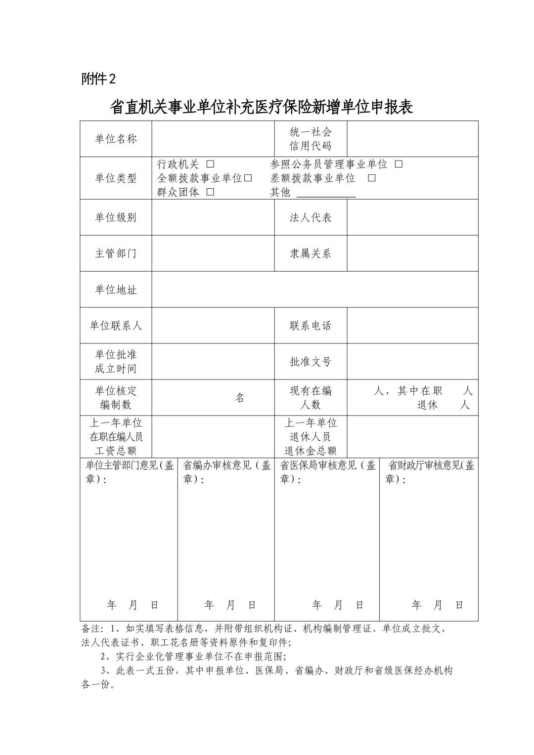 ⑧参保单位主管部门、省编办、省医保局、省财政厅审批并盖章的《省直机关事业单位补充医疗保险新增单位申报表》。
