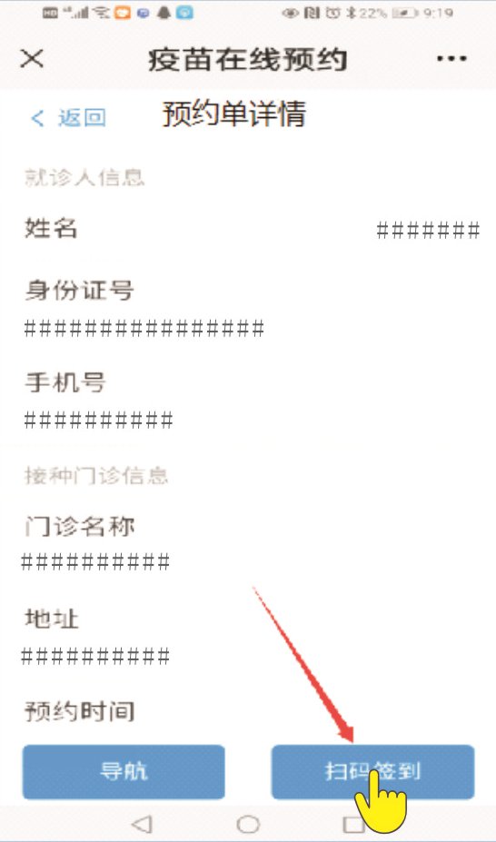 第九步:接种当天,在接种室通过预约单扫码签到。