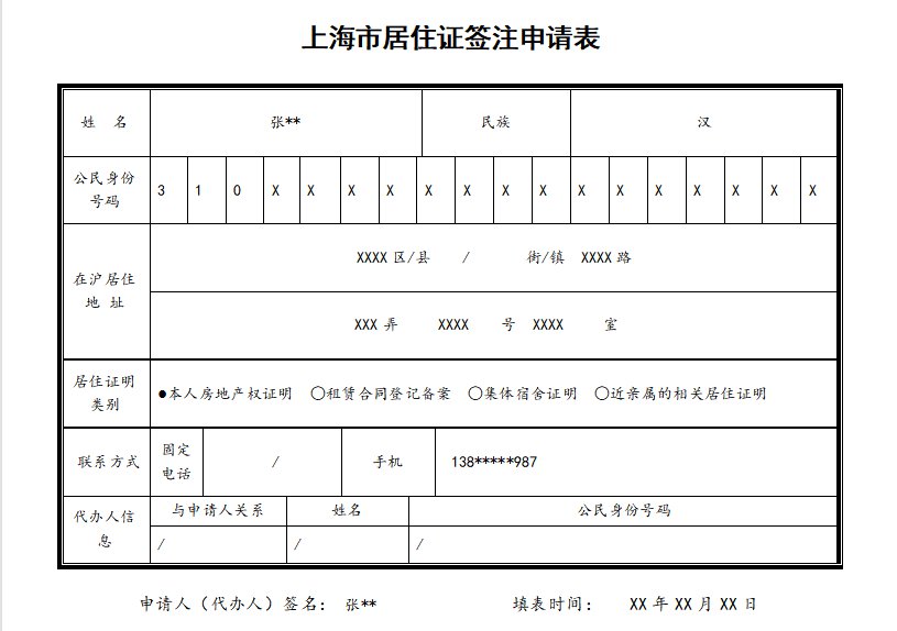 1、《上海市居住证签注申请表》,由各社区事务受理服务中心提供,或点击下载。