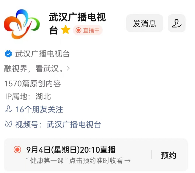 本次节目还通过“武汉广播电视台”视频号同步直播,无法通过电视观看的可以搜索“武汉广播电视台”微信视频号,通过手机在视频号观看。